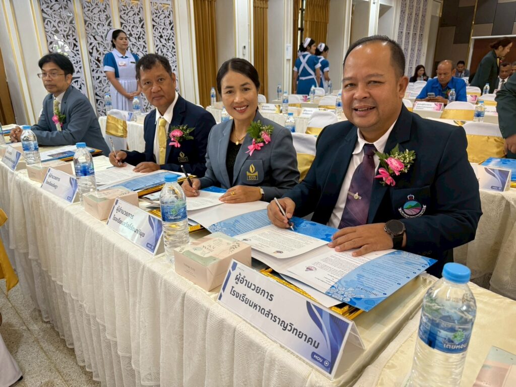 วันที่ 21 สิงหาคม 2568 นายสุรเชษฐ สองรักษ์ ผู้อำนวยการโรงเรียนหาดสำราญวิทยาคม นางสาวจุรีรัตน์ สงด้วง หัวหน้ากลุ่มบริหารวิชาการพร้อมด้วยนักเรียนโรงเรียนหาดสำราญวิทยาคม ร่วมโครงการประชาสัมพันธ์หลักสูตรการศึกษาของสถาบันพระบรมราชชนก กระทรวงสาธารณสุข และการทำข้อตกลงความร่วมมือทางวิชาการ (MOU) ระหว่างสถาบันพระบรมราชชนกกับโรงเรียนในสังกัดสำนักงานเขตพื้นที่การศึกษามัธยมศึกษาในเขตพื้นที่สุขภาพที่ 12 เพื่อสร้างโอกาสทางการศึกษาให้นักเรียนได้เข้าศึกษาต่อในระดับปริญญาตรีสาขาคณะพยาบาลศาสตร์ และคณะสาธารณสุขศาสตร์และสหเวชศาสตร์ สถาบันพระบรมราชชนก กระทรวงสาธารณสุข โดยมี รองศาสตรจารย์ ดร.อรัญญา เชาวลิต รองอธิการบดีสถาบันพระบรมราชชนก เป็นประธานในพิธีเปิด ณ วิทยาลัยพยาบาลบรมราชชนนี ตรัง